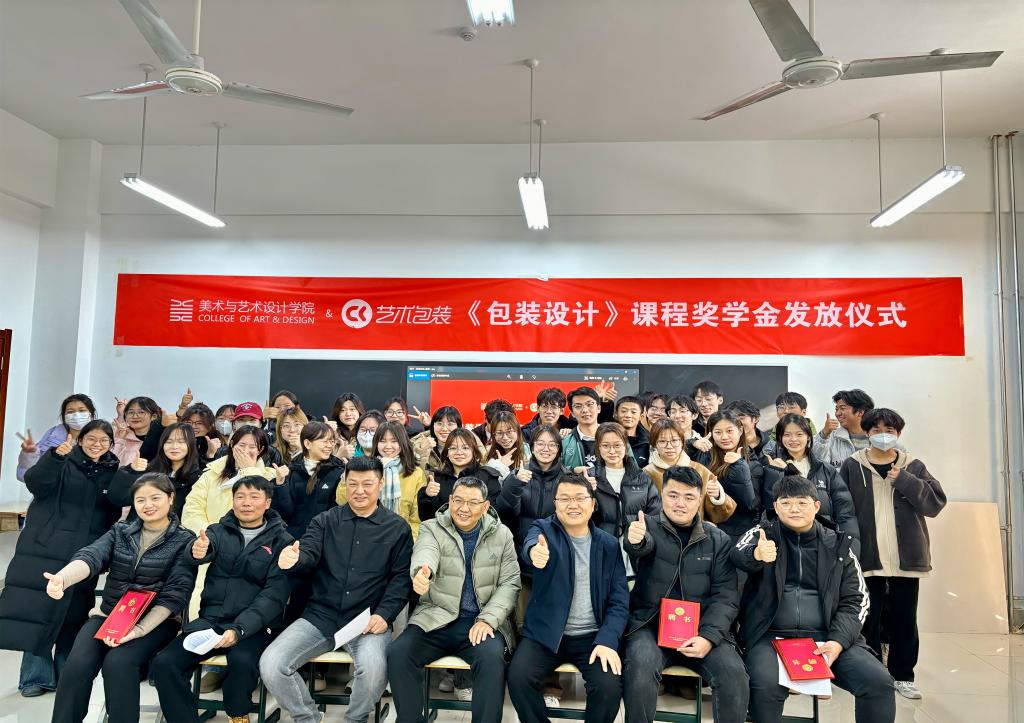 为深入探索“专业主干课程+企业(行业)”的应用型人才培养模式,根据《CK艺术包装课程奖学金制度(试行)》精神,12月26日下午,77779193永利官网集团在博雅楼A402举办《包装设计》课程奖学金发放仪式。学院党总支副书记谭胜兵、课程任课教师汤文广,CK艺术包装创始人、学院企业导师冯大力,CK艺术包装主创设计师陈浩然、吴倩、李熙龙出席了会议,21视觉传达设计本科1班全体同学参加了会议。会议由学院院长助理厉相帅主持。