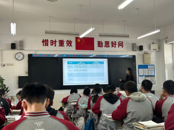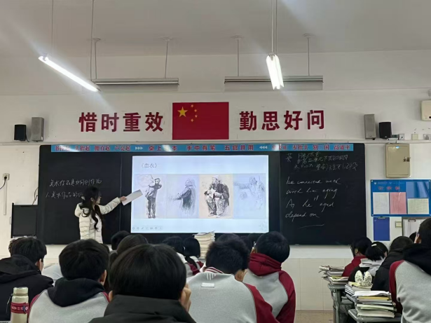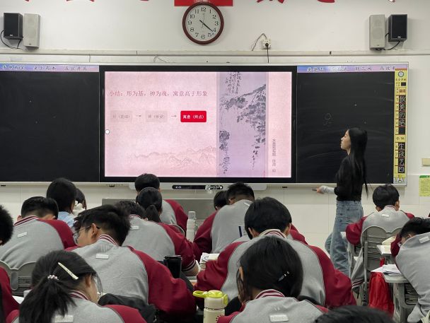 在枣庄八中东校录播室,优秀教师单星星为全体师生呈现了一堂生动的《书画寄情》示范课,师生双方积极互动,交流热烈。课后,教师之间进行了评课活动,实习学生就课程备课、课堂教学等环节进行了提问,老师们进行了详细解答。