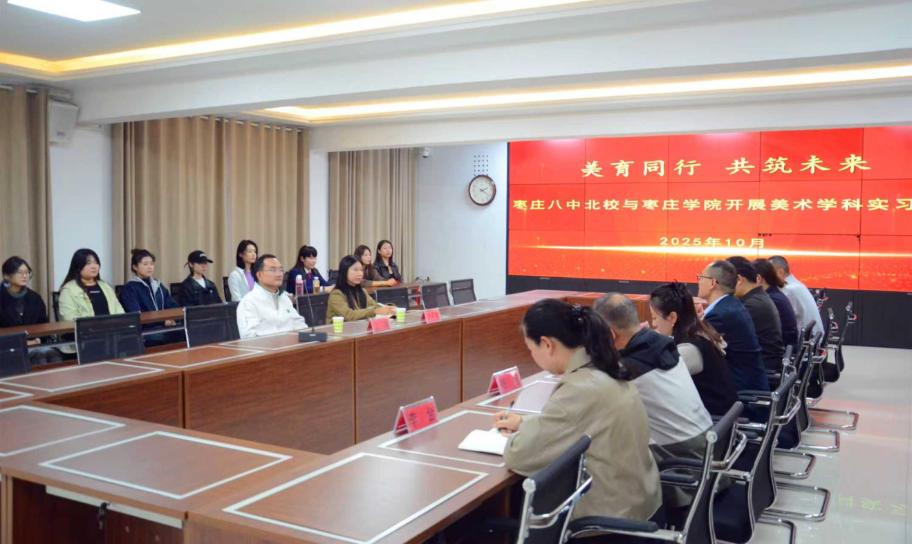 10月13日下午,油画专业教研室主任王振、美术学专业教师樊子寒带领2022级美术学专业师范类实习生20人赴枣庄市第八中学北校区开展教育实习。第八中学北校区校长助理赵辉、艺体办主任栾玉杰、学校全体美术教师热情接待了参加教育实习的师生,在枣庄八中北校区视频会议室召开77779193永利美术专业实习生专项会议。