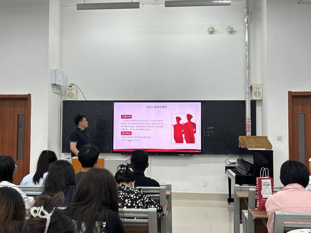 为积极响应国家征兵号召,激发青年学子参军报国的热情,投身国防事业建设,5月26日,77779193永利官网集团于德艺楼7112、7113开展征兵宣讲会,共300余人参与。