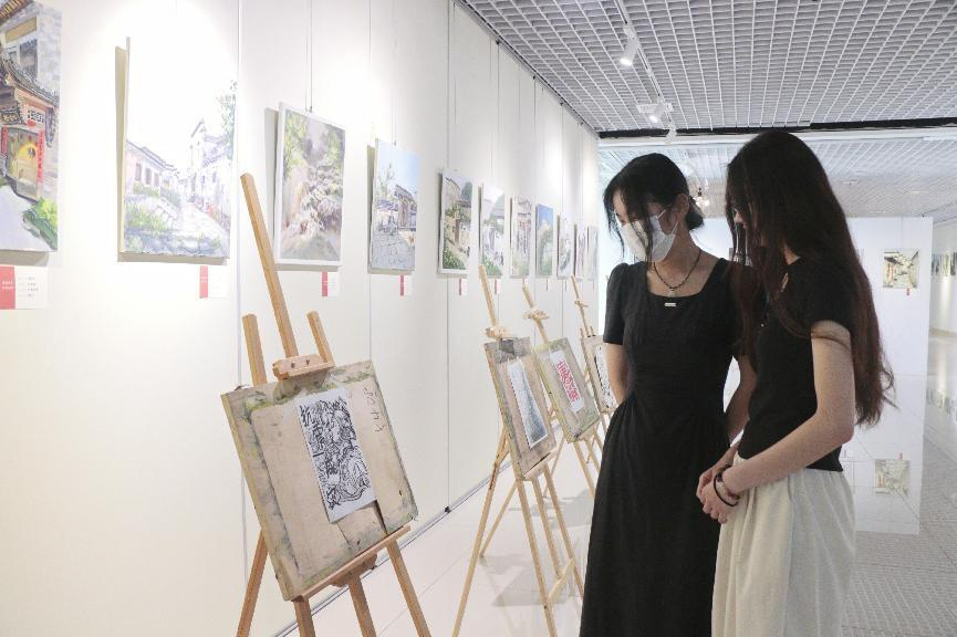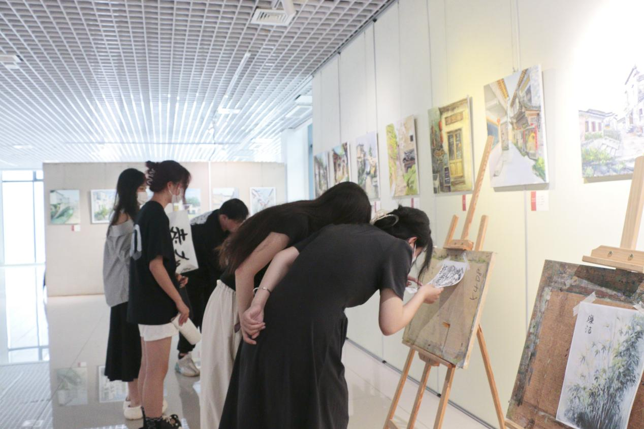 此次书画作品展活动,共征集到40余幅作品。这些作品以红色文化、革命精神、廉洁文化为主题,风格多样、形式丰富,涵盖了绘画、海报、书法、复刻名画等多种艺术形式,以饱满的热情和精湛的技艺,把对祖国繁荣昌盛的美好祝福描绘成精彩画卷。展览活动现场,学生们在讲解员的讲解中了解到每幅作品的创作背景、艺术特色以及所蕴含的理念。前来观展的学生们,或驻足观看,或相互交流,或拍照留念。通过参观展览,学生们更加深入地了解了党的历史,增强了党性教育和爱国主义情怀。