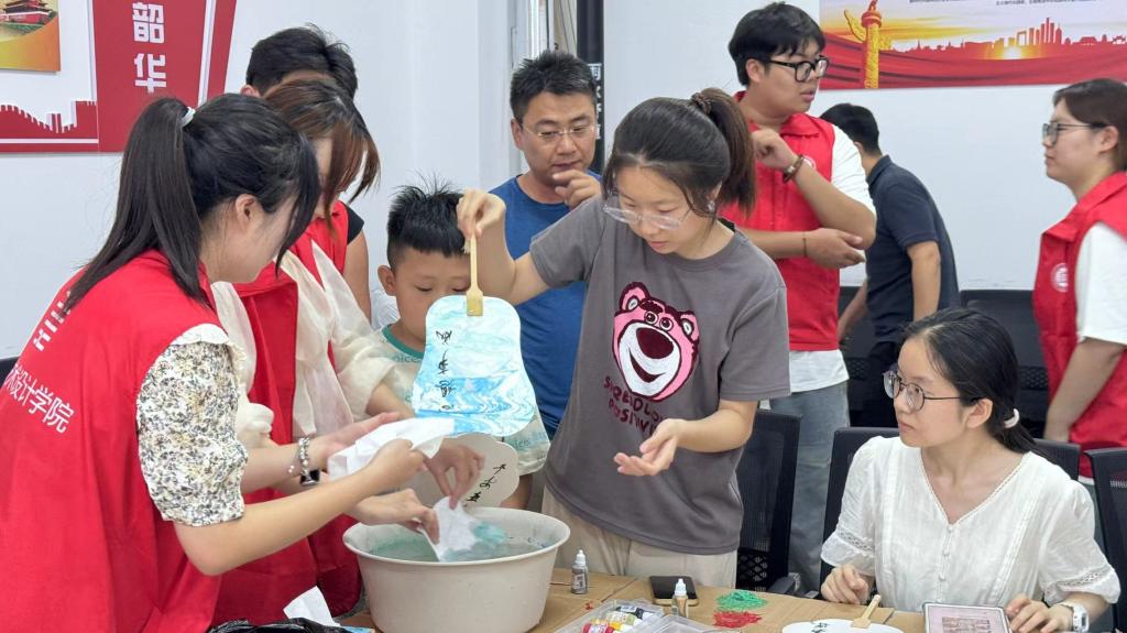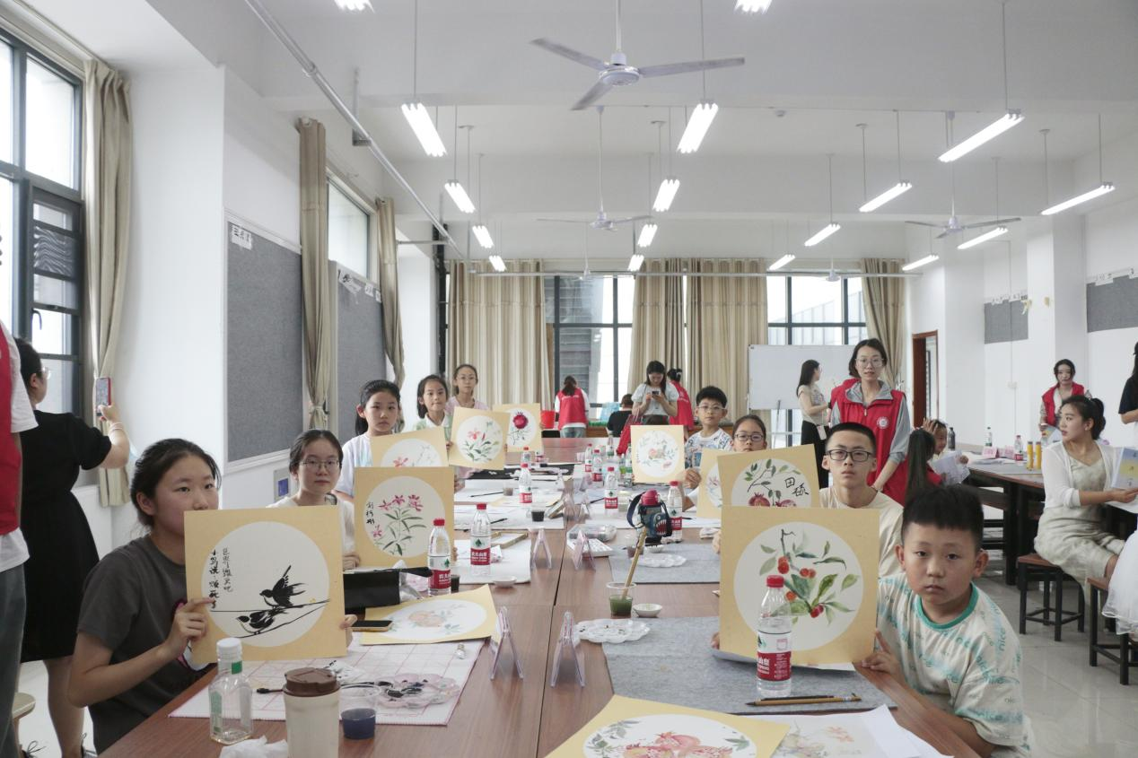 本次活动从参观博雅画廊、美术馆开始,党员讲解团为小朋友们介绍了展厅概况、展览作品的艺术风格和绘画技艺,小朋友们与讲解员积极互动,感受丰富多彩的艺术魅力。志愿者们结合“中国历代绘画大系”开展了中国传统绘画宣讲,为小朋友们宣讲中国优秀传统绘画艺术和知识,同时带来了国画课堂、卡通填色画体验、书法课堂、纸浆画制作、非遗漆扇制作等趣味十足的美育小课堂,一件件特色鲜明的作品在小朋友们手中诞生。教室里充满了欢声笑语,孩子们一边认真创作,一边与志愿者们分享创作灵感。