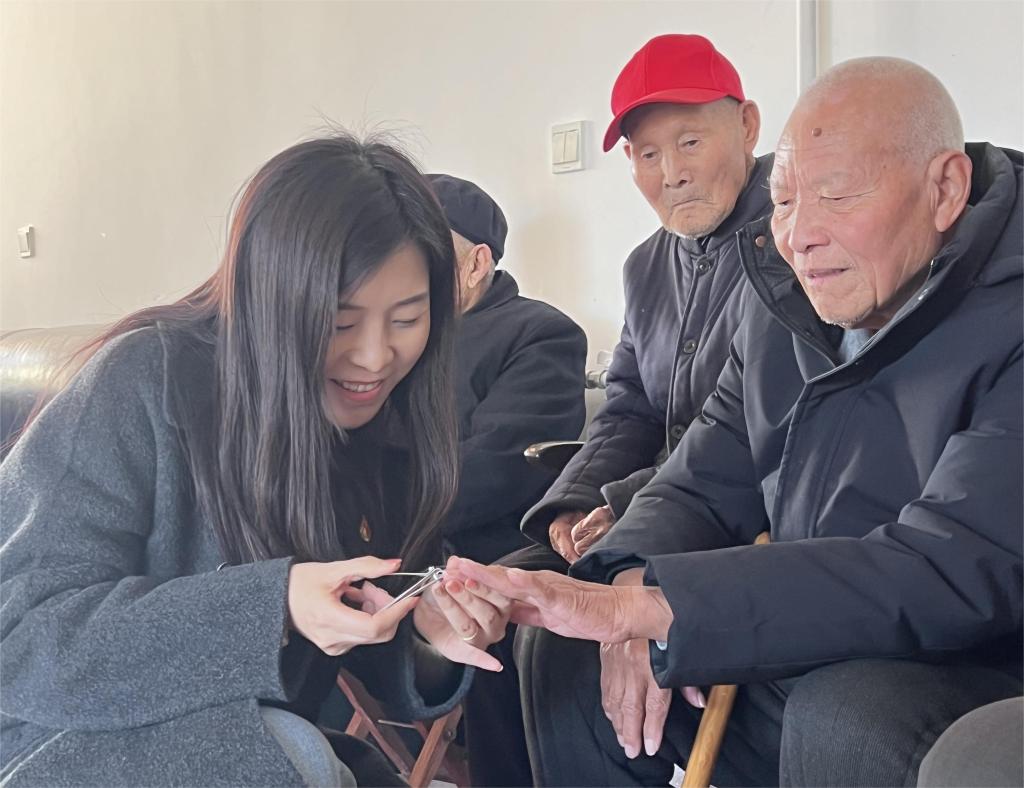 志愿者们为五保孤寡老人们带去了水果和部分生活用品等。在敬老院工作人员的引领下,他们走进敬老院的食堂、活动中心、寝室等处,为老人们打扫院卫生、整理床铺。随后开展了消防安全知识宣讲,普及消防安全知识,筑牢安全意识。志愿者们一边忙着手里的工作一边与老人聊家常、问冷暖,为老人剪指甲、梳发,以实际行动使老人感受到家人般的温暖和社会大家庭的关爱。最后,志愿者们为老人表演了精心准备的文艺节目,与老人们一起唱他们最喜欢的《学习雷锋好榜样》《没有共产党就没有新中国》《团结就是力量》等红歌,老人们跟着一起哼唱、拍手,幸福的笑容在彼此的脸上洋溢。