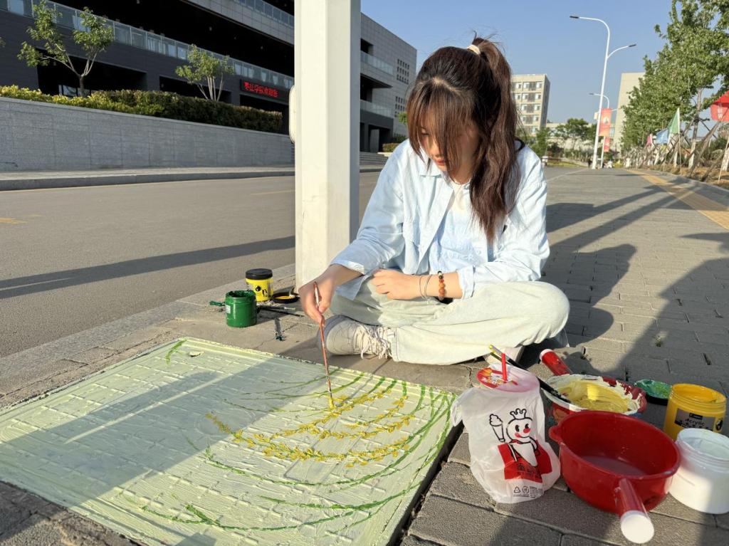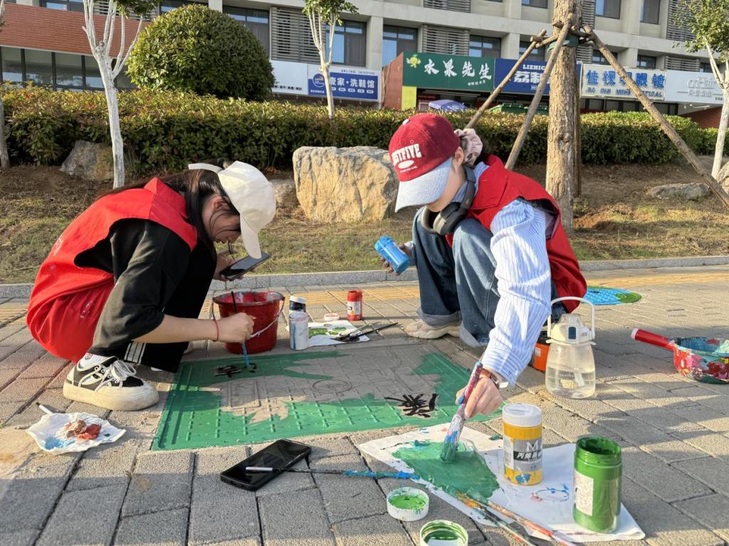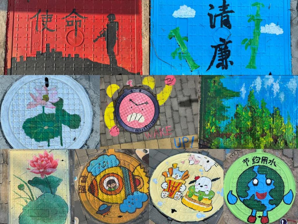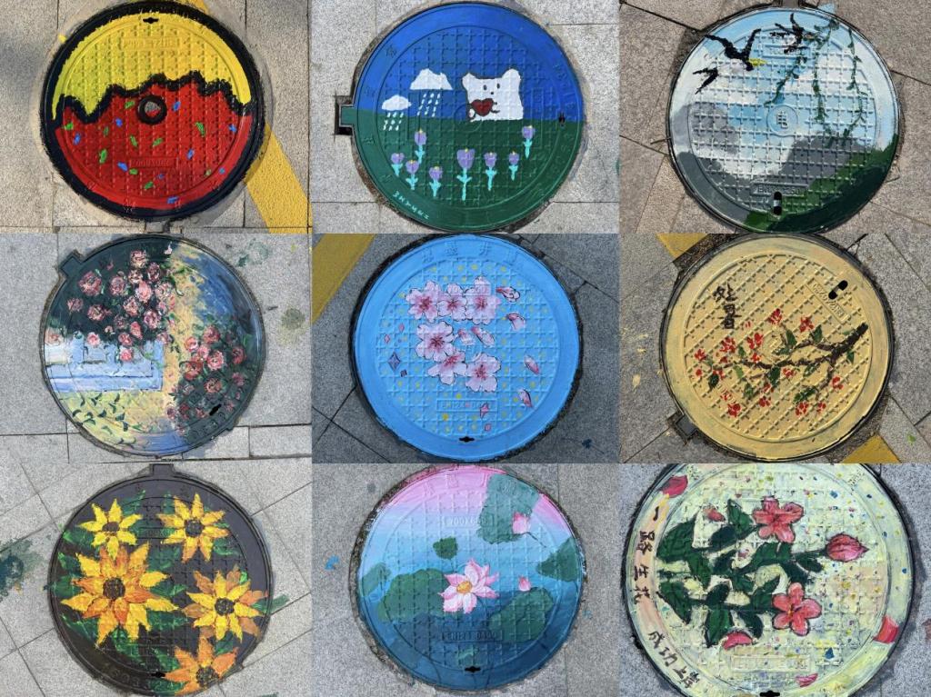 活动中,共有60名志愿者沿着办公楼、宿舍楼等周边路面井盖进行绘制,以井盖为画布,以中国传统文化、二十四节气、社会主义核心价值观、廉洁文化、节约粮食为主题重点绘制了奚仲路、匠心大道、鲁班路、希望大道等主干道。志愿者先用清水将井盖进行彻底的清洗,随后手持画笔与调色盘,利用井盖的形状和特性,一笔一画认真勾画轮廓、上色、修边,让一个个笨重的井盖瞬间变得鲜活、生动起来。志愿者们用心创作井盖约300个,吸引了一批批同学前来打卡互动,成为校园里亮丽的一道风景线。