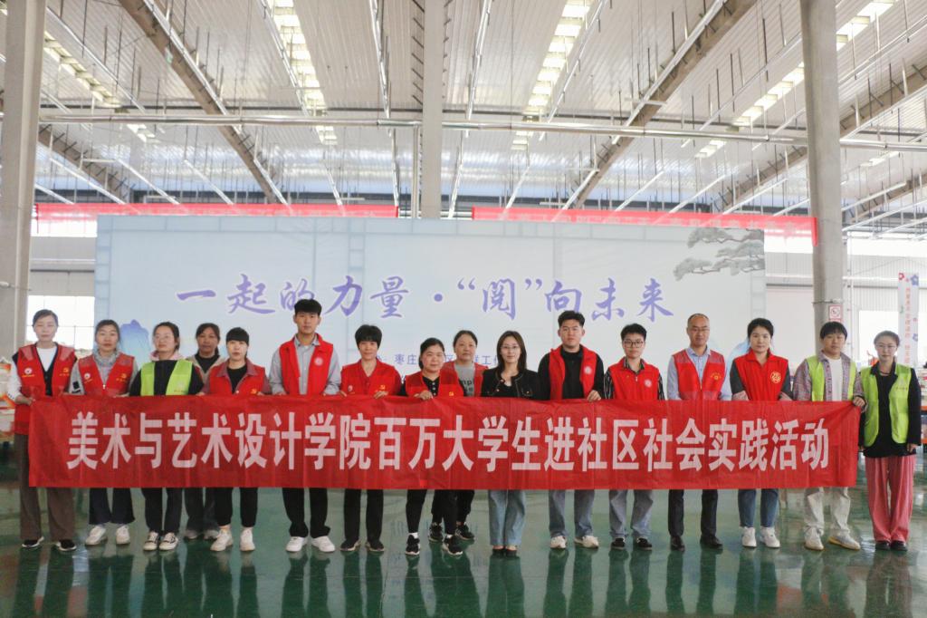 为深入贯彻习近平总书记关于推动全民阅读工作的重要指示精神,建设“书香中国”的系列讲话精神,在第二十九个“世界读书日”来临之际,4月21日,美术与艺术设学院赴山东当康文化书城,联合枣庄高新区兴仁街道党工委开展“一起的力量'阅’向未来”创意阅读市集活动暨百万大学生进社区社会实践活动。