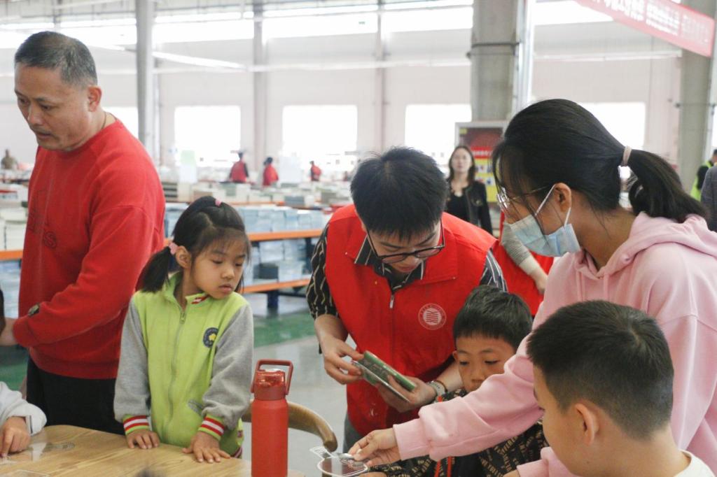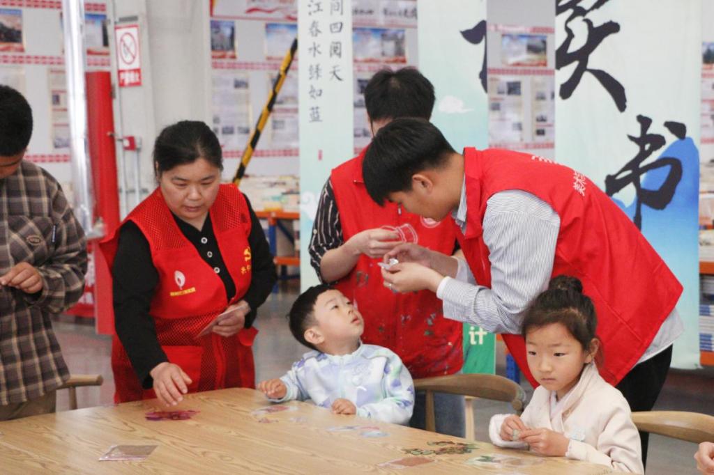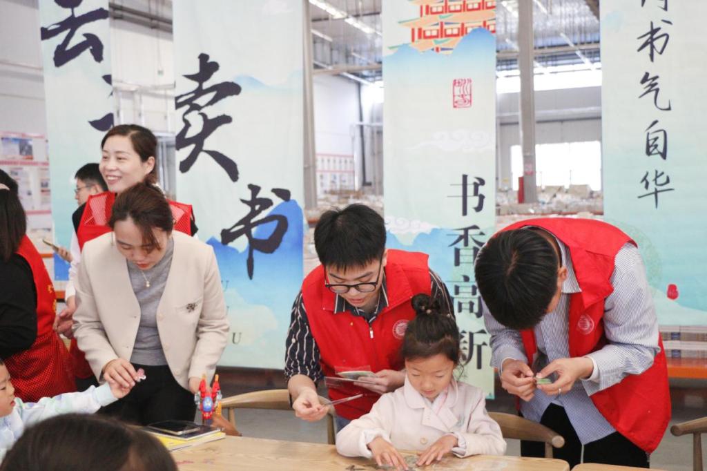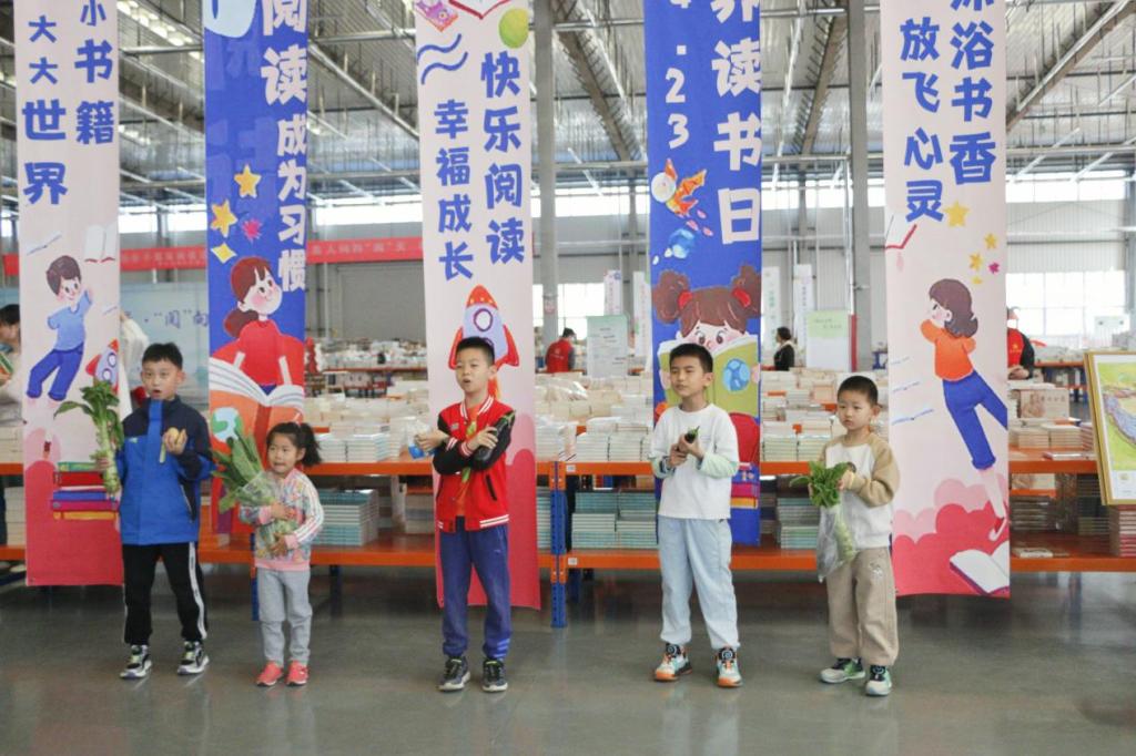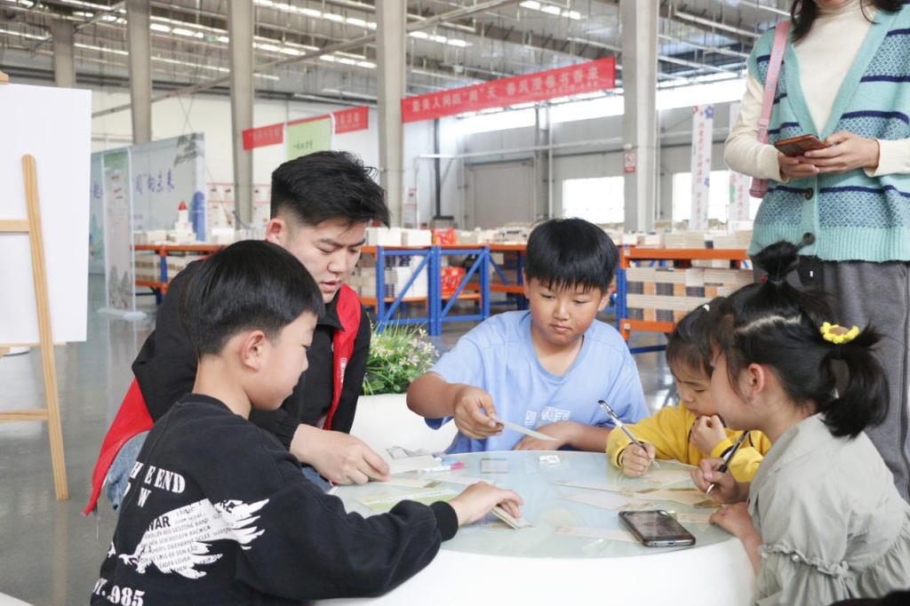 活动伊始,小朋友们在入场处有序排队签到,通过背诵诗词领取书籍。本次活动分为漂流书局-儿童跳蚤市集、以书换蔬、民族故事阅读盲盒、创意书签设计、垃圾分类体验、拼贴诗、赠子春天、与书相约、我与书籍合个影九部分,小朋友们在志愿者们的带领下依次参加活动。活动现场热闹非凡,小朋友们通过一书换一书,旧书换新友,以书换蔬,给市集带来鲜活温度,将书籍的文化精神传递给每一位参与者。