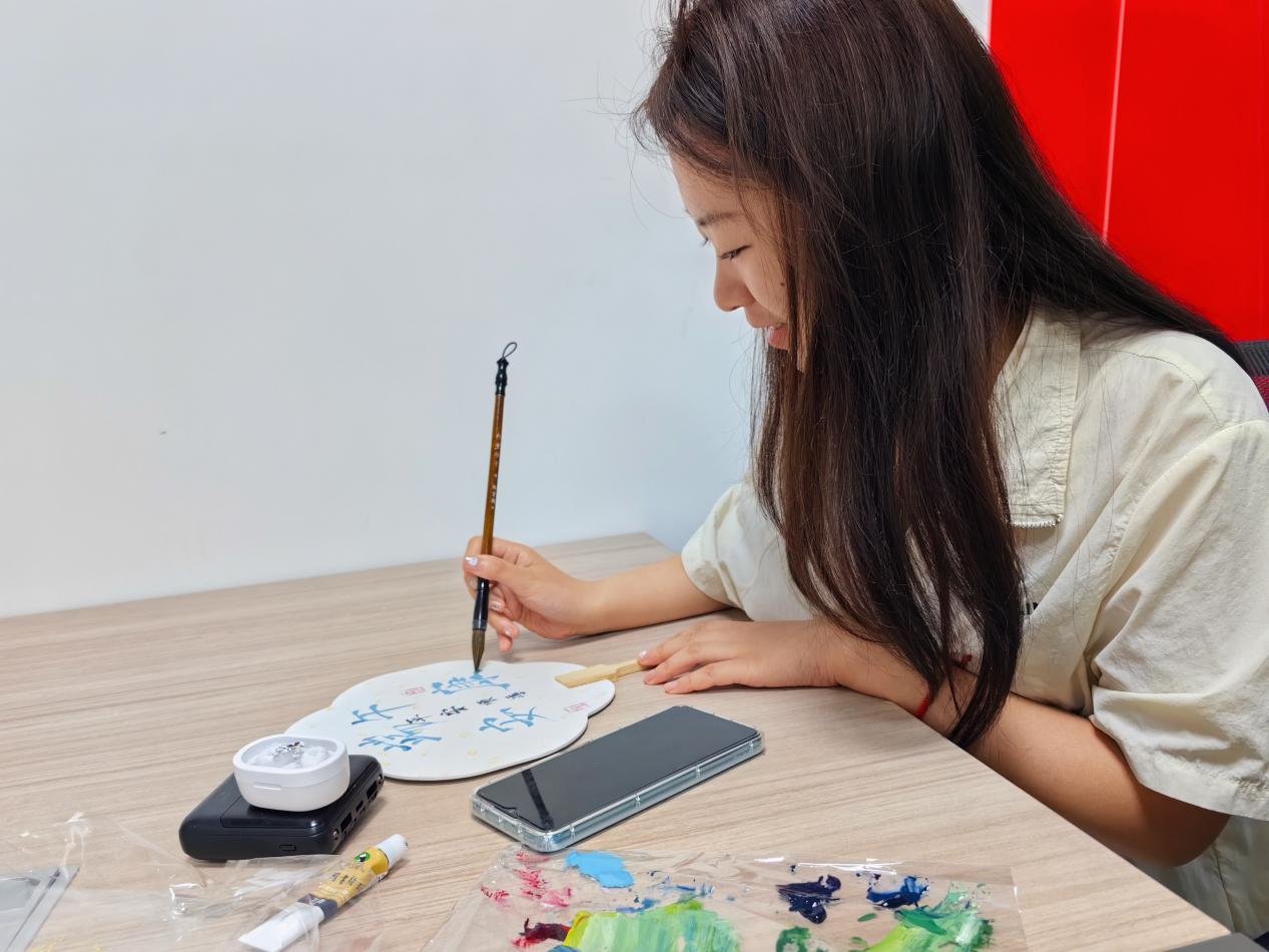 活动中,学生们以“端午”为主题,充分发挥想象力和专业能力,将端午节的由来、习俗、故事等文化内涵绘制在一把把团扇中,并送给毕业生,给即将踏上人生新旅程的毕业生留下一份美好的回忆。随后,毕业生们进行漆扇制作,学生们将大漆滴入水中,通过勾画改变纹路,再持团扇轻缓入水,漆色晕染在扇面,制作出一幅幅独具特色的漆扇作品。最后,同学们共同观看了《清廉中国端午专题片》,让学生重温了屈原舍生报国的爱国情怀,深刻地感悟屈原清廉自守的高尚品格。