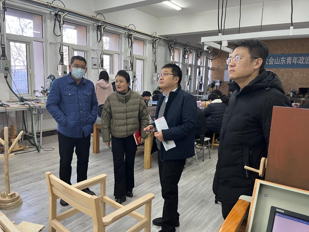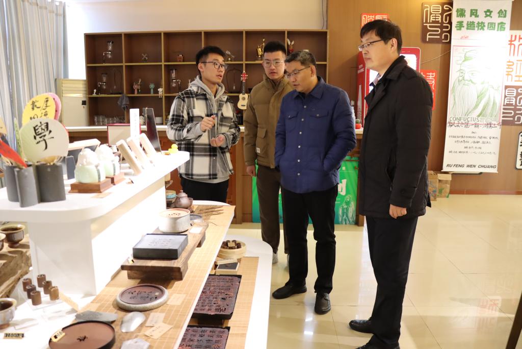 在济宁学院美术学院,学院党委书记杨晓青对考察团表示热烈欢迎,简要介绍了美术学院发展历程、总体情况和办学特色,双方围绕党建工作、文化“两创”、学生管理、就业创业、教学管理等工作进行了深入交流。座谈会后考察团现场参观了美术学院正在举行的“踏雪行”学生写生作品展和儒风文创项目,并前往位于济宁高新区大学园的儒家文化文创基地,深入金工、版画、皮艺等专业教学场地进行实地考察。