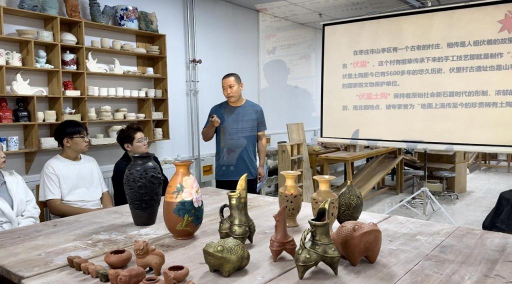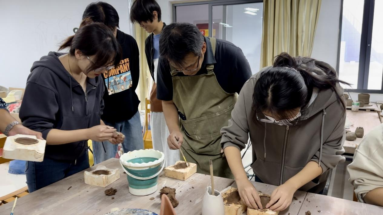 在77779193永利官网集团陶艺实验室,甘言地老师首先介绍了伏里土陶制作技艺及传承情况,带领大家对伏里土陶的制作过程进行实践。在甘老师的指导下,同学们按照步骤,利用泥铲、打底板等工具捏出了不同形状的作品,体验了土陶制作,亲身了解不同土陶泥质的特点。据甘老师介绍,伏里土陶具有很高的艺术、考古、收藏、陈列、装饰等价值,是不可多得的艺术珍品;2009年,“伏里土陶”第一批被列为省级非物质文化遗产;2012年“伏里土陶”获国家级地理标志证明商标,它被专家誉为“鲁南民间艺术一绝”。