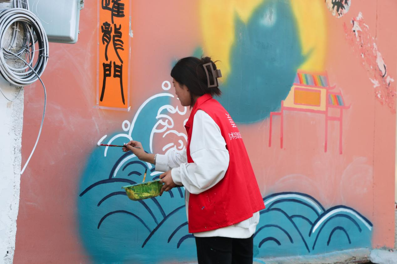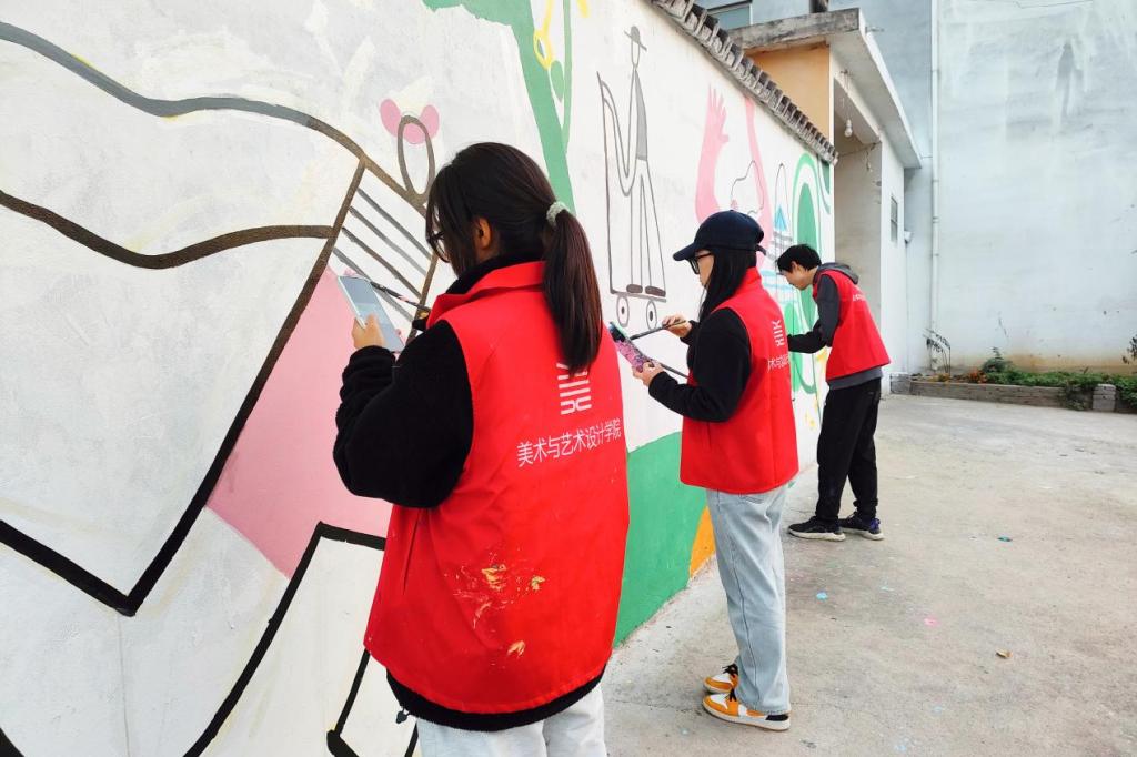 志愿者们结合岩湖村乡村风貌和乡村文化,围绕“乡村振兴”“美丽乡村”“乡村文化”等主题,利用周末时间共绘制墙体600余平。活动中,志愿者们不畏严寒,以乡村墙面为画卷,搭架作画精心设计,以倡导文明、宣传新农村文化为核心,把墙景美化作为支持乡村精神文明创建工作的载体,通过墙绘美化乡村环境,用画笔描绘美丽乡村,赋能乡村振兴,为建设欣欣向荣新农村贡献青春力量。