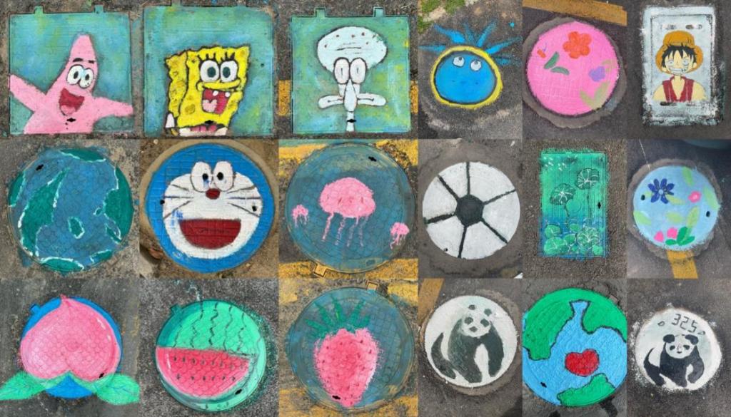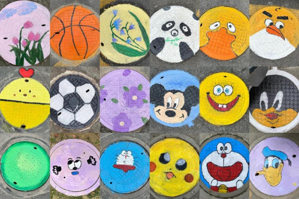 志愿服务活动以“井盖绘画”进社区的形式开展,走进兴安社区、天安社区、光明社区,围绕社会主体核心价值观、创建全国文明城市、保护环境等主题,由学生们自主设计作品内容,老师指导完成创作。绘画志愿者们通过构图、调色、上色等步骤有条不紊地进行绘画,共绘井盖涂鸦300余幅。色彩靓丽、风趣活泼的井盖涂鸦引来附近居民的驻足围观、拍照留念和频频点赞。