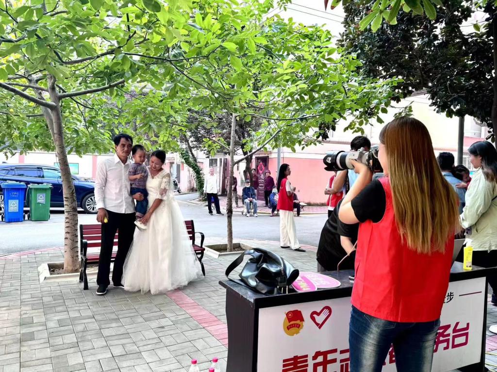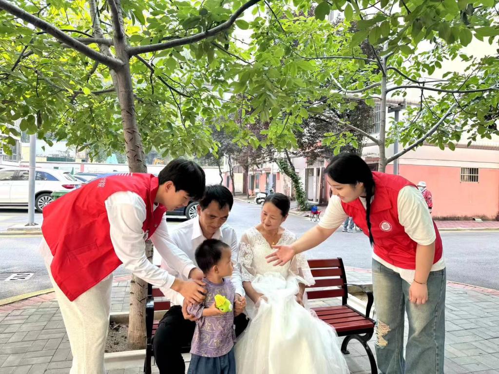 志愿者们扛起相机,走进社区,与社区居民交流沟通拍摄需求,为他们量身定制了拍摄方案。志愿者们拿起化妆刷,充分发挥美术学科专业优势,为有需要的居民化妆。在拍摄现场,居民们在充满爱意的互动中,露出幸福的笑容。志愿者们认真调整角度,寻找最佳光线,随着快门清脆的声音,大家的笑容定格在美好的一瞬。拍照结束后志愿者们辅助专业人员修出照片,一张小小的照片,留下一段美好的回忆,一个短短的镜头,展现出大家幸福的精神风貌。据悉,当天的拍摄活动长达6个小时,共为60余户居民拍摄300多张个人照或全家福。