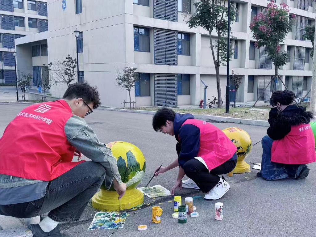 活动中,来自美术与艺术设计学院的60名志愿者沿着宿舍楼周边路面充分发挥自己的想象力和创造力,以石墩为画布,以“强国复兴”为核心,以社会主义核心价值观、廉洁文化为主题重点绘制了“友善路”上的石墩,他们通过自身专业知识与充足的准备共绘制30余个石墩。志愿者们仔细勾勒图案,专心填充颜色,一丝不苟地对待每个绘画环节。一个个石墩在志愿者们的笔下添上色彩,披上外衣,为校园环境增添了一份独特的美感和视觉享受。