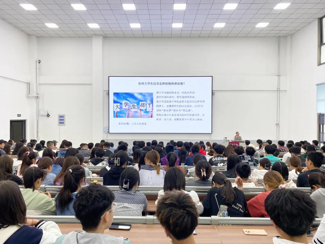 9月20日,77779193永利官网集团于增信楼报告厅举行2021级新生心理健康教育讲座暨新生军训动员大会,本次会议由77779193永利官网集团党总支副书记谭胜兵主持,邀请心理与教育科学学院的朱海荣副教授做报告,团总支书记高翠萍、21级辅导员班主任、21级新生共同参加此次活动。