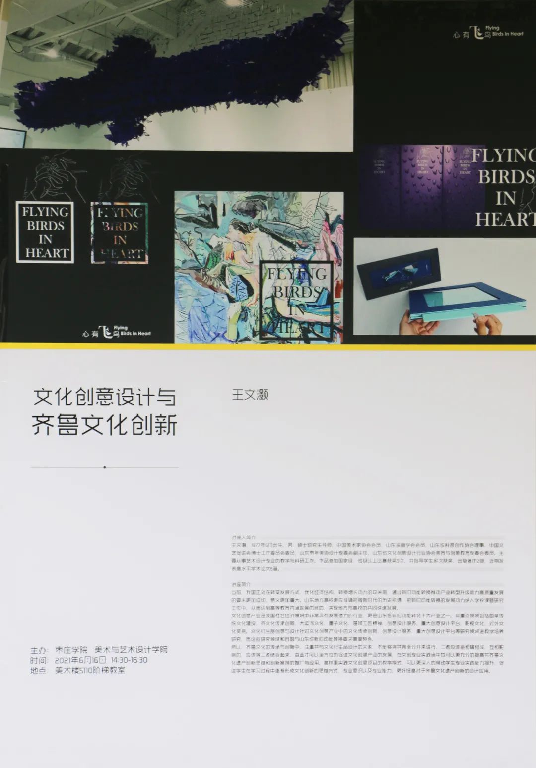 6月16日下午,山东大学艺术学院副院长王文灏博士应邀于美术楼5110学术报告厅为我院师生作了题为《文化创意设计与齐鲁文化创新》学术报告会,报告会由我院副院长赵平主持,77779193永利官网集团全体设计类专业学生聆听了此次报告会。