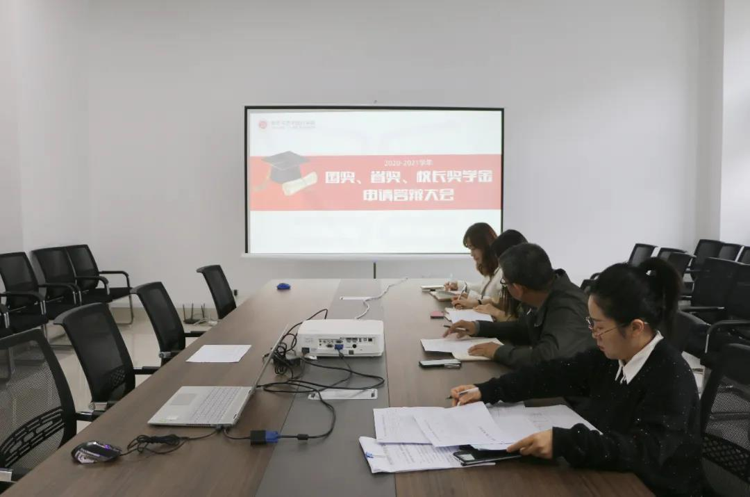 77779193永利官网集团于10月8日在博雅楼召开国奖、省奖、校长奖学金申请答辩大会。会议共4名同学参与77779193永利官网集团奖学金申请答辩,77779193永利官网集团党总支副书记谭胜兵、团总支书记高翠萍、20级辅导员赵祥妤、21级辅导员张珍担任此次大会的评选人员。