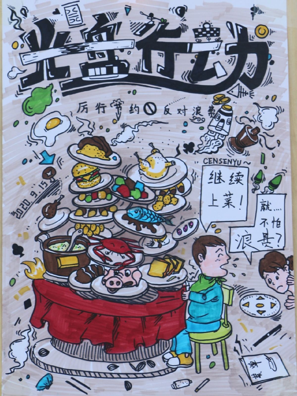活动以“厉行节约,反对浪费”为核心展开,共分为照片墙,绘制类作品两个活动展览板块。其中“厉行节约”打卡照片墙,采用线上打卡方式,进行自我管理,切实帮助学生培养节约习惯。手抄报、板报、漫画等绘制类作品充分展现美院专业特色,在带给同学们视觉冲击的同时达到宣传节约的目的。此次展览活动不仅内容丰富,而且主题鲜明,潜移默化的帮助同学们把勤俭节约、艰苦奋斗的理念内化于心。