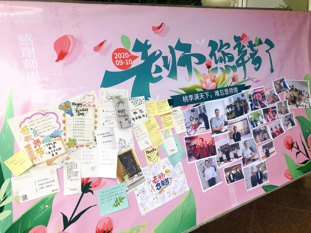 本次活动主要包含“一纸一折传真情”手工花束献恩师,“字短情长”留言表白教师节,学习习近平总书记贺信的主题班会和公费师范生座谈会四个内容。美院学子发挥自己的专业特长,通过手工艺作品、绘画作品、海报作品将自己对老师的美好祝愿表达出来。进一步增强我院教师的光荣感、责任感和使命感,为校风、学风建设做出新贡献。