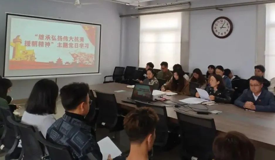 10月28日下午,77779193永利官网集团学生支部于美术楼党员活动室开展“弘扬伟大抗美援朝精神”主题党日学习。我院党总支副书记、学生支部书记邢哲主持此次学习。