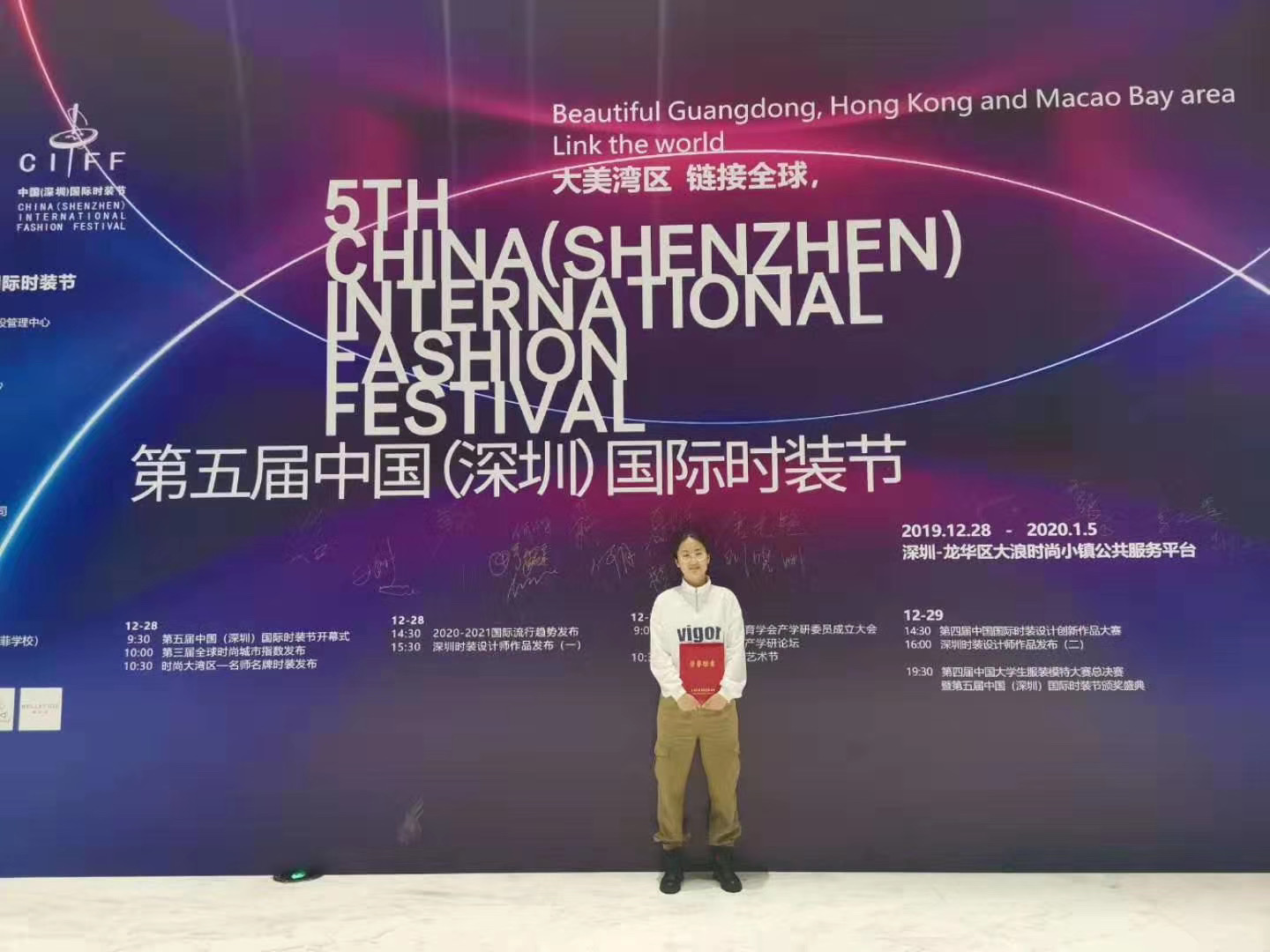 本次比赛是由深圳市时装设计师协会、中国(深圳)国际时装节组委会、中国纺织服装教育学会主办,并在连续三年全球时尚城市指数排名第六,国内时尚城市排名指数第一的深圳进行。决赛前期的初赛是在众多服装设计专业院校的学生、服装企业以及独立服装设计师的设计作品效果图中,竞选出31组入围作品,经过13天的紧张准备,分别制作完成5套实物作品来进行决赛。大赛评委包含中国十佳优秀服装设计师、服装设计师金鼎奖获得者、深圳市十佳服装设计师等。我院服装与服饰设计专业方向刚刚起步,学生作品就能入围此类专业赛事并获奖,确实非常不容易且值得高兴的,这次赛事的锻炼与交流开启了一个良好的开端。