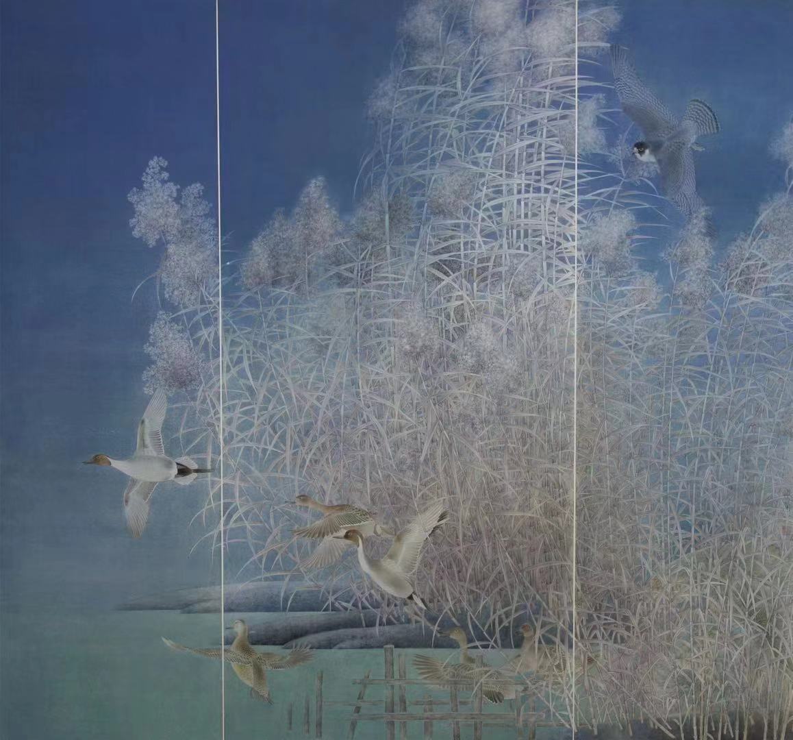 王新章教授的综合材料绘画作品《锦簇》,冯劲草副教授的油画作品《结婚照》、壁画作品《解忧和亲》,陈海鹏副教授的综合材料作品《杂草系列——复苏》入选全国美展;李伟副教授的油画作品《合璧》、孙峰讲师的国画作品《雪域铸军魂》入选山东省区展,张闻老师的国画作品《霜天竟自由》入选湖北省区展。