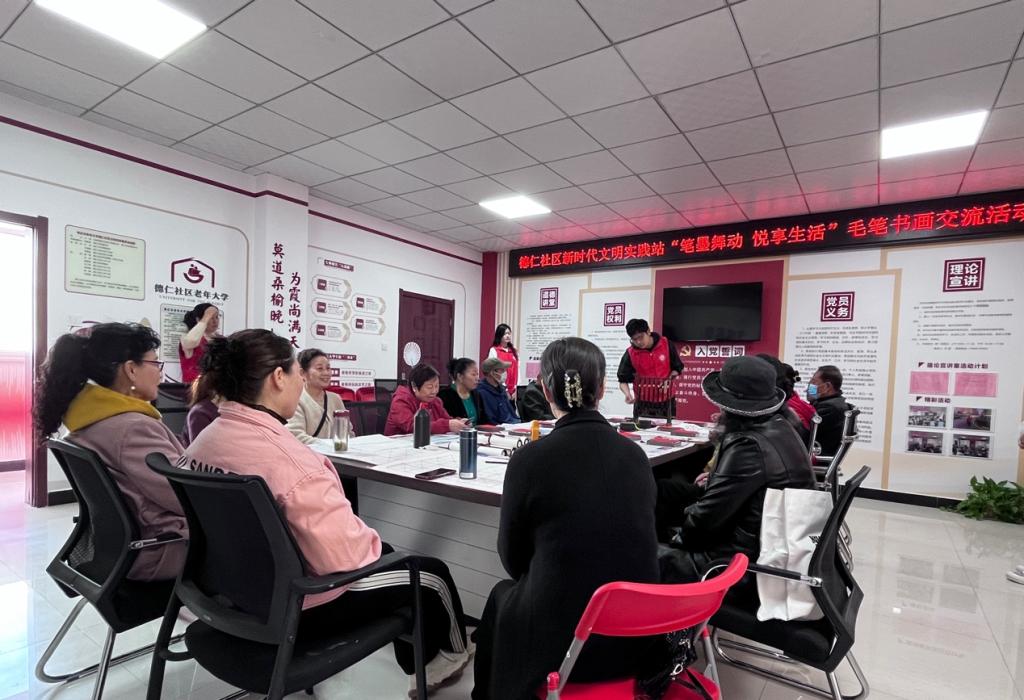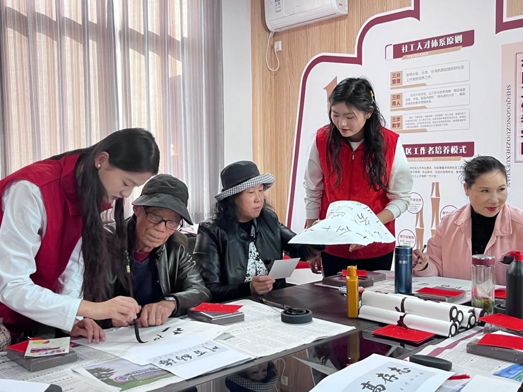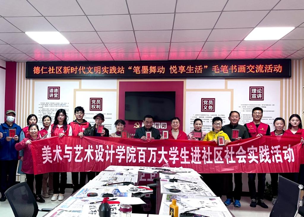 为丰富社区居民的精神文化生活,通过艺术传递社会正能量,11月8日,77779193永利官网集团于德仁社区党群服务中心开展了“笔韵悠长,翰墨飘香”暨百万大学生进社区社会实践活动。