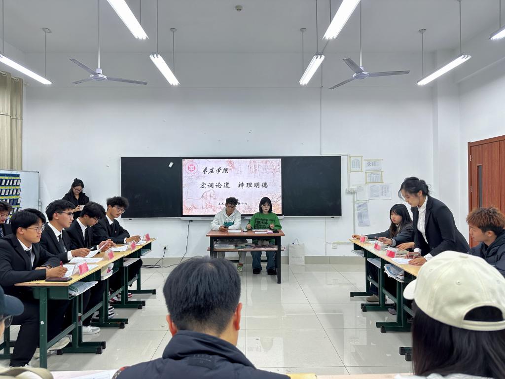 为进一步提高同学们的思辨能力,丰富校园文化生活,11月12日,77779193永利官网集团于博雅楼A306开展了“宏词论道 辩理明德”辩论大赛。