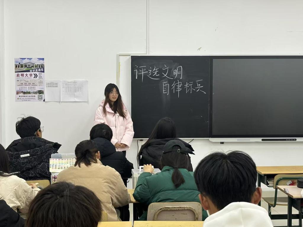系列活动包括“优良学风,你我共创”学风检查活动、“文明评选”活动、“墨舞黑板,字绘梦想”粉笔字大赛活动、“单词接龙”活动、“扬帆学风,筑梦未来”主题班会活动等,本次活动共有1000余人参加。“文明评选”活动对教室、宿舍等区域进行检查,评选出2024文明自律标兵、优秀文明教室以及优秀文明宿舍。在“优良学风,你我共创”学风检查活动中,对学生考勤、课堂纪律、宿舍用电安全与卫生进行了检查。“墨舞黑板,字绘梦想”粉笔字大赛活动共有40余人参加,同学们力求在有限的空间内呈现出自己的最佳书写水平。“单词接龙”活动共有30余支队伍参与其中,比赛内容从英译汉、汉译英两个部分出发,队员们团结协作,分工明确。各班团支书在“扬帆学风,筑梦未来”主题班会活动中,帮助同学们进一步明确了大学生活的目标与方向。