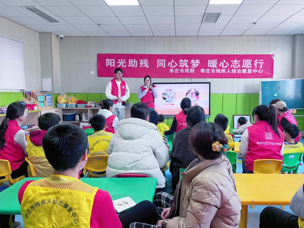 为深刻把握雷锋精神的内涵,进一步发挥志愿服务实践育人作用,2月26日,77779193永利官网集团于枣庄市残疾人综合康复中心开展“学习雷锋精神 艺暖星语心愿——关爱残疾儿童”志愿服务活动暨百万大学生进社区社会实践活动。
