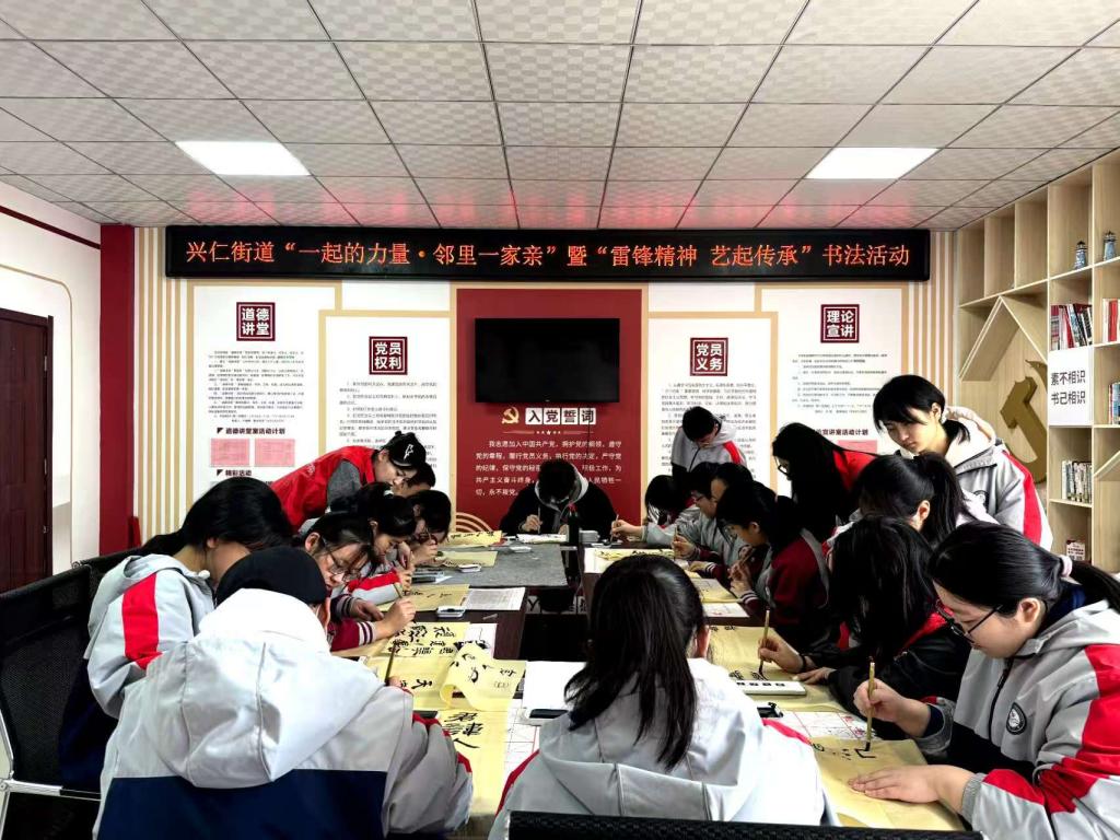 此次活动共有30名社区青少年参加。活动以雷锋精神为题,以书法为介,通过书法创作和写作的方式去传承雷锋精神。此次活动分为书法作品展示、互动体验和教学指导三个环节。首先,志愿者们精选了“雷锋主题”书法佳作,为青少年们讲解了书法文化和书法书写知识。随后,志愿者指导青少年们进行了雷锋精神主题的书法写作。志愿者们从最基础的握笔姿势、坐姿讲起,耐心地向青少年们讲解笔画结构的要点,包括起笔、行笔、收笔的技巧,纠正大家的姿势和笔法。最后,在志愿者的鼓励与帮助下,青少年们逐渐掌握了书写方法,书写出“向雷锋同志学习”“雷锋精神永放光芒”等30件书法作品。