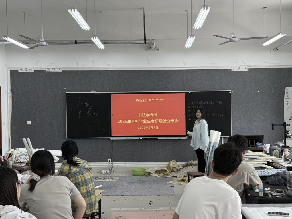 分享会上,2025年成功考取研究生的优秀学生代表精准对接专业和班级,分别围绕美术学、视觉传达设计、产品设计、环境设计、书法学、动画专业进行精准帮扶。考研优秀毕业生制作了经验分享PPT,结合自身考研经历,从院校专业选择、复习计划制定、心态调整等多个维度展开,通过“名师点拔+朋辈分享”双轨模式,为学子提供了全方位备考指导。在学习上,考研优秀学生代表详细介绍了政治、英语以及专业课的题型与答题技巧,强调“精准定位+差异化复习”的重要性。在心态调整方面,保持积极乐观心态,避免产生焦虑,实现知识与能力的双重提升。分享会结束后,同学们纷纷表示受益匪浅,要科学规划备考路径,以更加饱满的热情和坚定的决心投入备考中,为实现自己的考研梦想而努力奋斗。