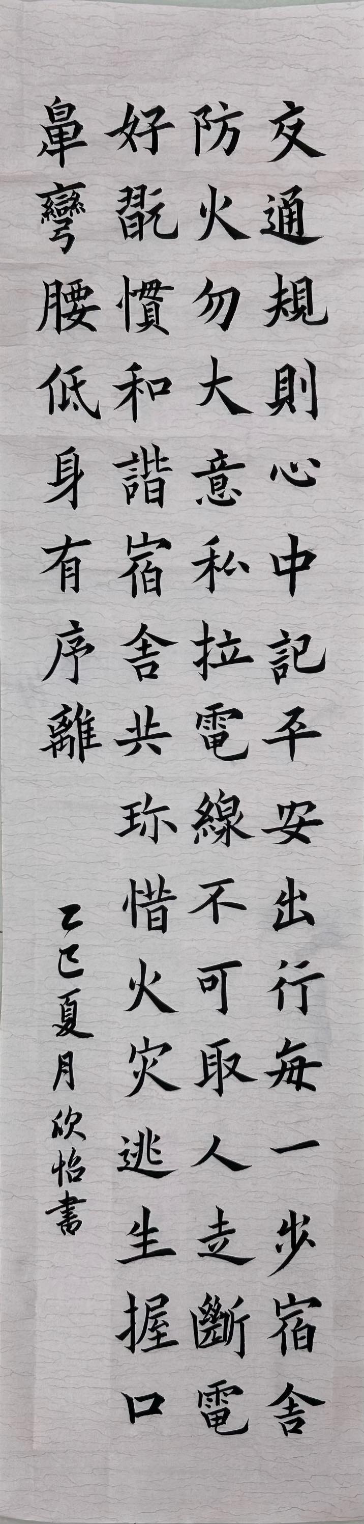 同学们积极报名,踊跃参加。活动以“切实筑牢校园安全防线,守护学生健康成长”为主题,同学们挖掘消防安全、交通安全、食品安全、网络安全等创作题材。同学们充分发挥专业特长,将传统艺术与安全理念进行融合。通过书画创作的艺术形式,传递出对安全的深刻思考,展现出安全事故的潜在危害与科学预防措施。同学们以新颖的创意视角和饱满的创作激情,将抽象的安全规则转化为具象的艺术表达,既提高了专业素养呼吁大家重视安全、守护生命。活动最终评选出18组作品,其中一等奖3名、二等奖4名、三等奖5名、优秀奖6名。