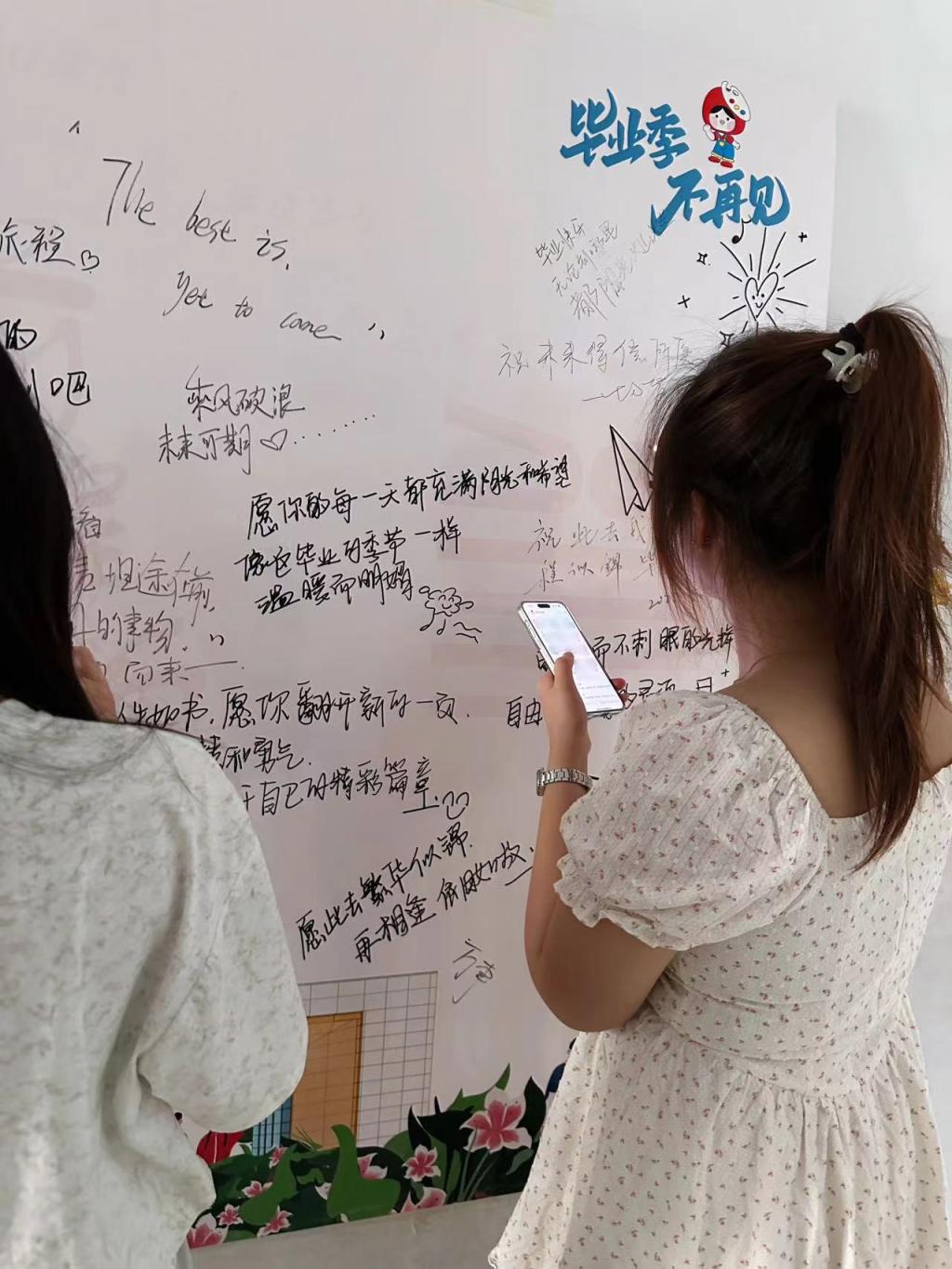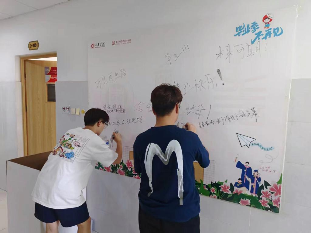 活动初始,在活动现场为大家精心准备了打卡墙作为毕业生打卡留念的记录点,展板上满是对未来的期许与对母校的眷恋;物品收集阶段,学生“一站式”社区9-227、2-329门口的收集箱每日都收获颇丰,既有专业画册、设计手稿等承载知识的书籍资料,也有画具、摆件等饱含创作温度的物件等。志愿者们细致分类、登记造册,让每一份心意都有迹可循;爱心传递阶段,将整理后的物品在社区内集中展示,在校生们可根据需求免费登记领取,剩余物品用于布置学生“一站式”社区等其他方式妥善处理,让毕业季的温情以另一种形式留存。