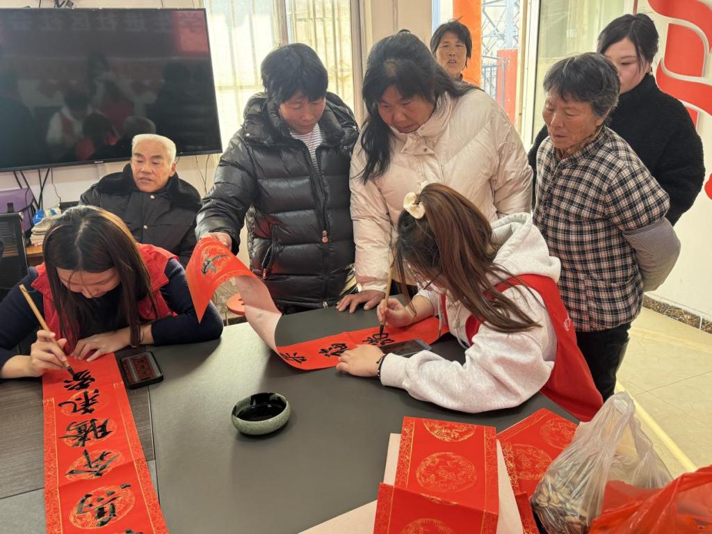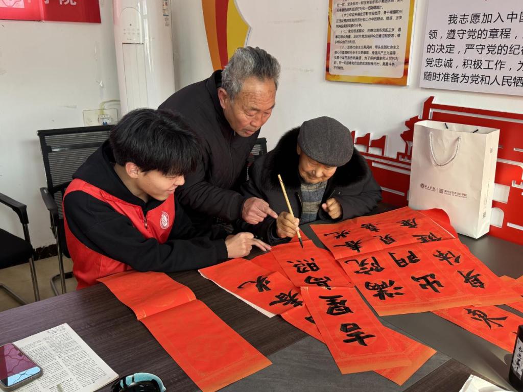 此次活动为30名空巢老人送去节日的问候与暖心的陪伴。活动中,志愿者们发挥专业特长,设立“书法艺术送温暖”摊位,不仅邀请书法专业志愿者现场进行书法技能教学,而且,根据各自需求和喜好创作春联和福字。一幅幅吉祥的春联、一张张饱满的“福”字,满载温情与祝福,传递到老人手中。志愿者们分组上门,为行动不便的老人贴春联、整家务,温情陪伴,帮助腿脚不便老人购买生活用品等实际服务,让志愿服务的温暖真正融入乡村老人生活。