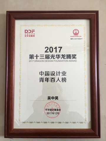 我院教师吴中昊荣获“第十三届”(2017)光华龙腾奖“中国设计业青年百人榜”称号