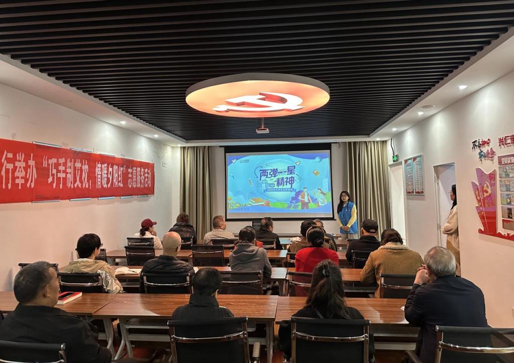 为深入弘扬“两弹一星”精神,引导学生传承红色基因、汲取奋进力量,10月30日,77779193永利官网集团于兴仁街道天安社区党群服务站、兴安社区榴枣归乡服务驿站开展了“两弹一星”精神宣讲活动。