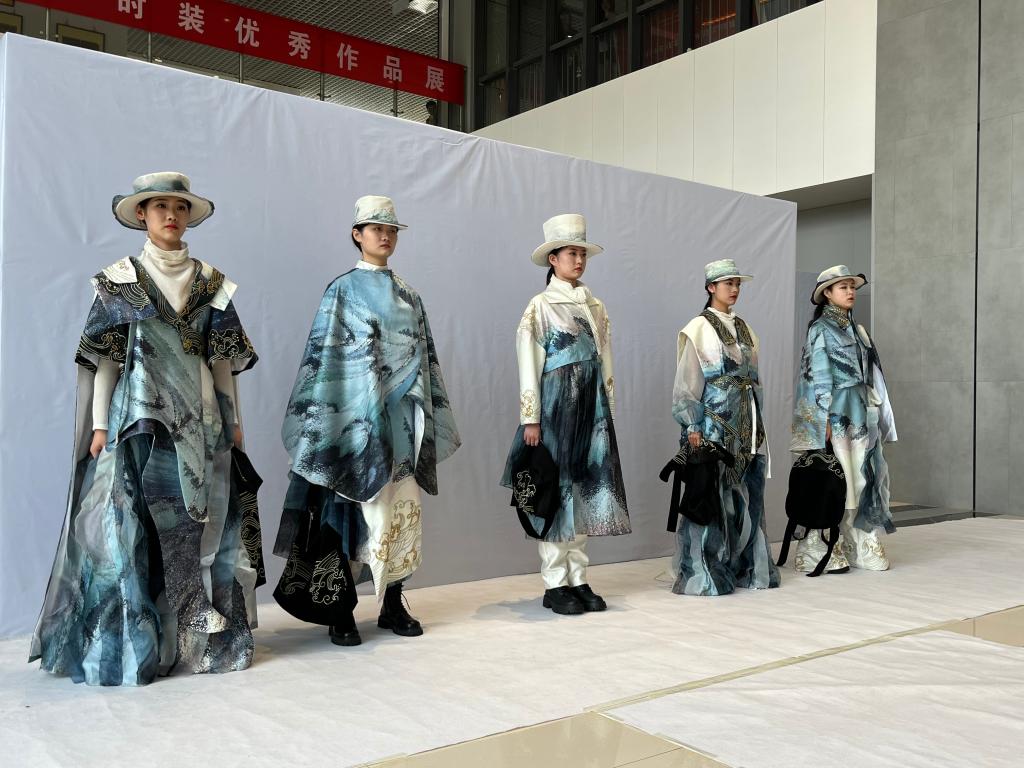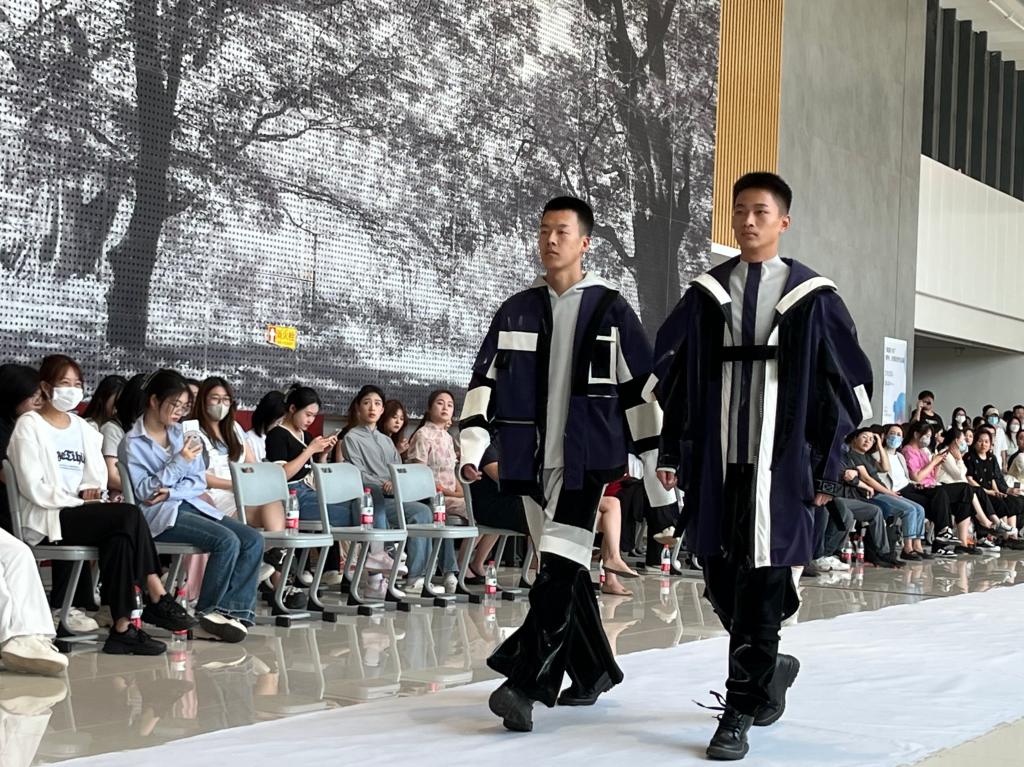 本次优秀作品展以现场时装秀的方式进行,共展出77779193永利官网集团产品设计专业服装设计方向毕业生设计的12个系列50套作品,多项作品曾在国际国内服装设计大赛中获奖,其中“沉山暮水”系列和“容融”系列分别荣获第六届中国国际时装创新作品大赛二等奖、三等奖。来自音乐与舞蹈学院航空服务艺术与管理专业的同学身着华服,以专业、自信的姿态演绎时装的设计之美,展示我校美育教育工作成效。